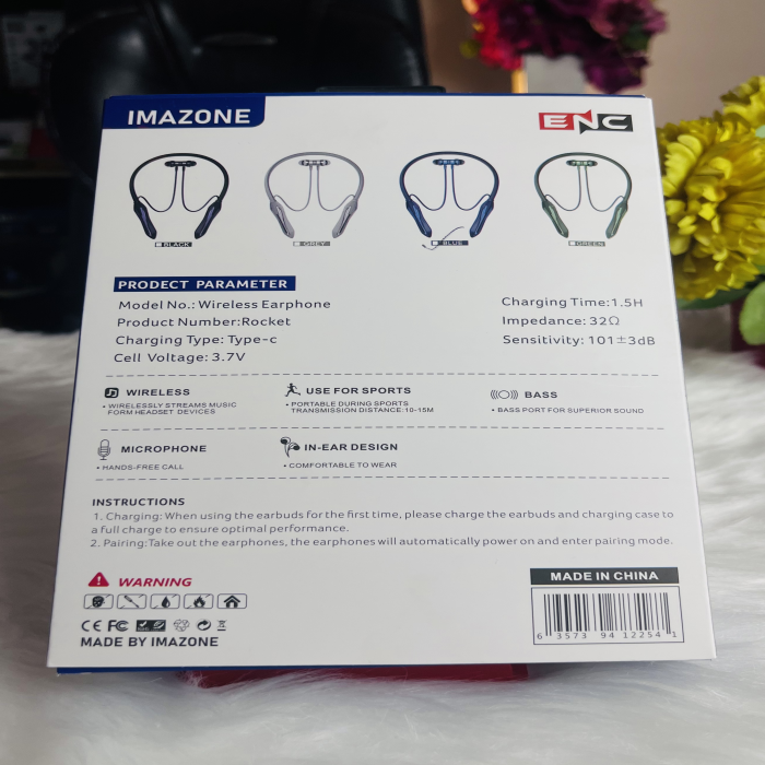 Imazone Rocket 300H Music Time Gaming Bluetooth Neckband with ENC, Voice Change & Fast Charging with Premium Gift đĨ